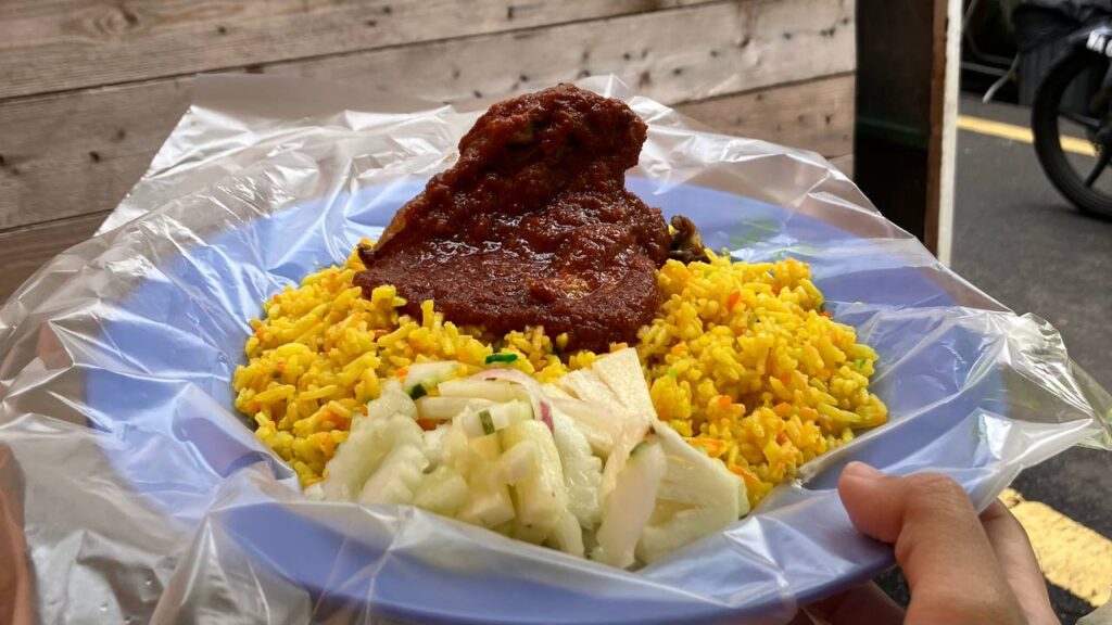 Bagi mereka yang gemarkan nasi, menu ini wajib dimasukkan jika kalian ke Bukit Bintang. Gerainya agak tersorok di bahagian lorong. Untuk ke sana, kalian hanya perlu berjalan ke kiri dari kedai Kunafa Crispy tadi sehingga ke hujung lorong. Lokasinya yang berada di laluan jalan yang tidak sesak membuatkan waktu operasinya agak singkat. Ia bermula pada jam 11 pagi dan tamat jam 5 petang. Jadi jangan datang lewat ya. Kami pun hampir-hampir terlepas waktu operasinya.